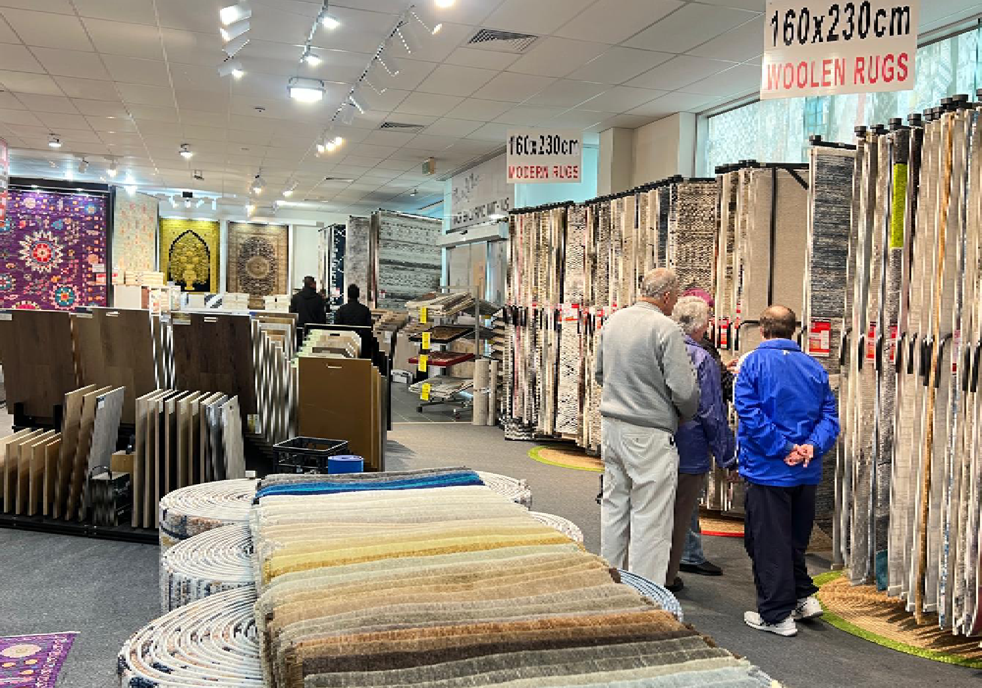 An 245x305cm rug fits nicely in an 335x400cm or slightly larger room, or in an open floor plan space. In a defined living area, the best layout leaves a 30-45cm border of flooring around your rug.